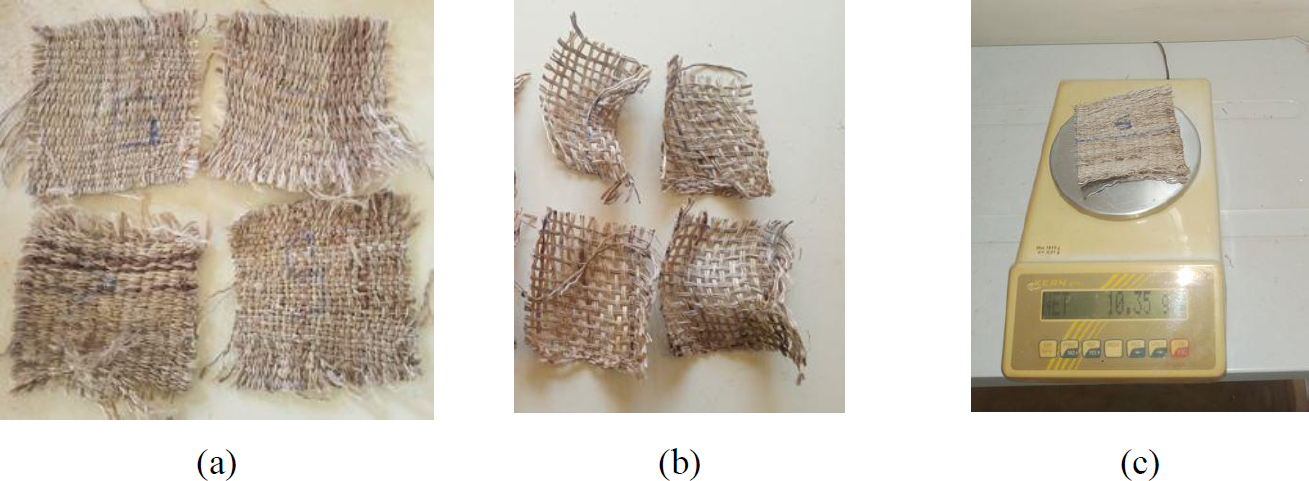 The geotextiles were woven from yarns obtained from kenaf fibers by hand spinning (Fig. 1).